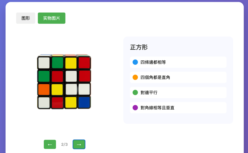 在每種類型的四邊形介紹頁面中,增加一個真實世界中的xxx的功能,打開可以查看一組
