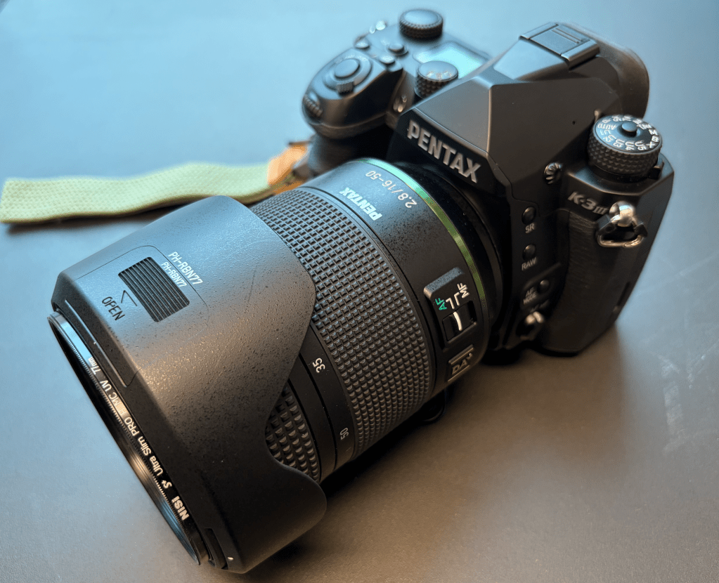 考虑这套相机并不会是随身携带的器材,所以没有考虑便携性,出于对画质和对焦的要求,选择了宾得标准变焦16-50/2.8镜头,应该可以覆盖大多数的题材。