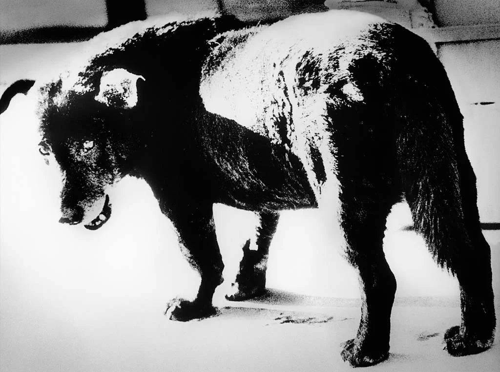 这张照片是日本摄影师森山大道用GR相机拍摄的《野犬》,1999年在旧金山现代艺术博物馆的森山大道摄影展的主题就是这张照片,森山大道曾经说: